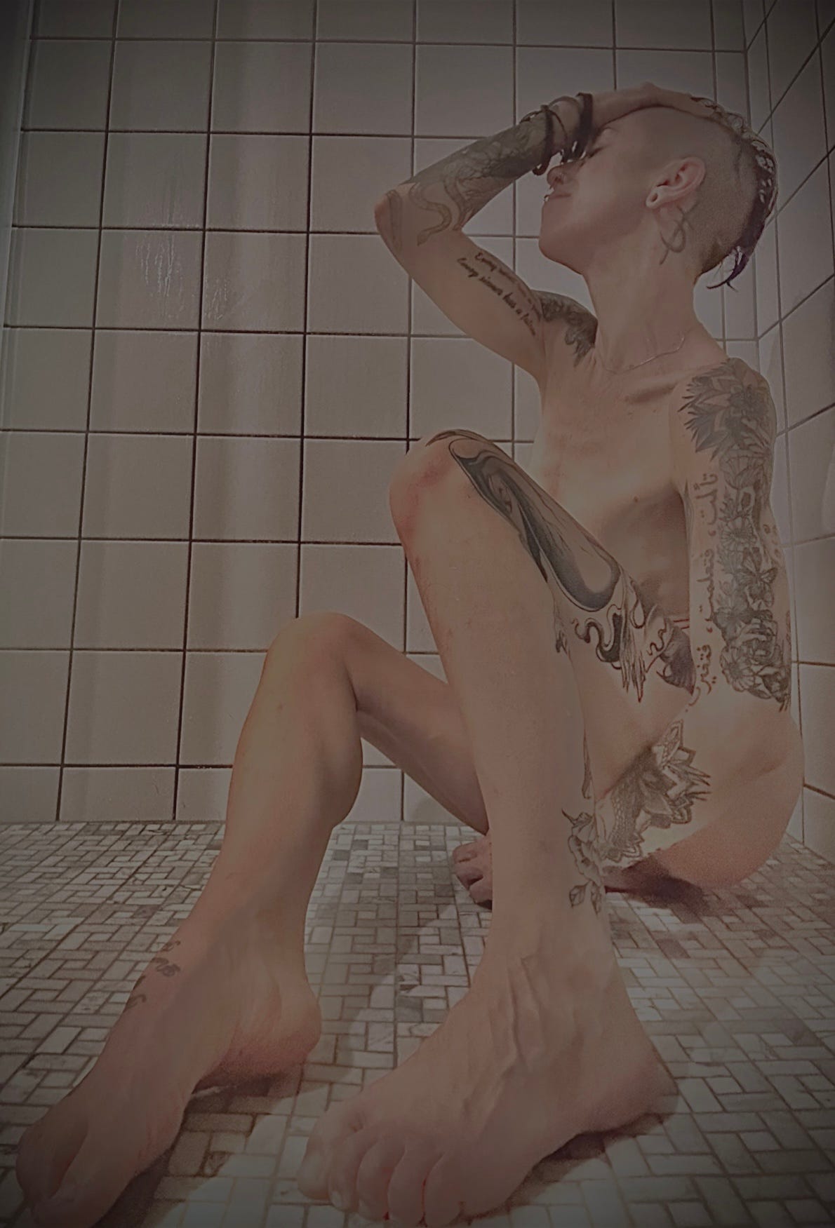 oh ,/jesus christ,/ father son and spirit i believe in the way you lick and l o v e this veil-drenched world your suffering is a scented oil who strokes god’s tongue with its heavenly odor your loins . like ours. burn for the unwashed stench of wilderness passion and so, we strip off these robes offleshandbone, and run on water, n a k e d and soaking to lie, intertwined with you ,/outside the camp,/
